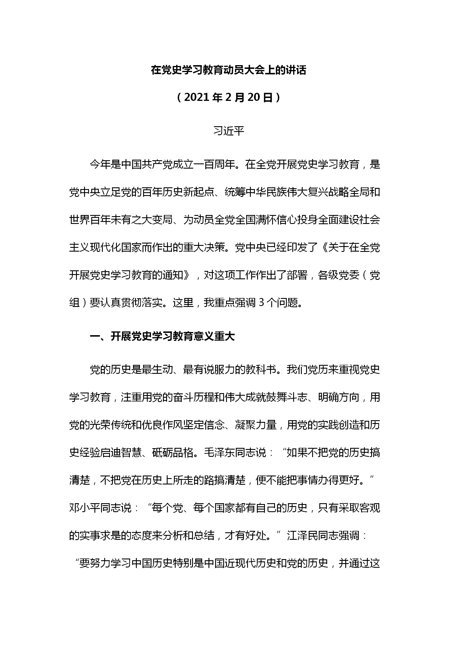 在党史学习教育动员大会上的讲话 --- 习近平