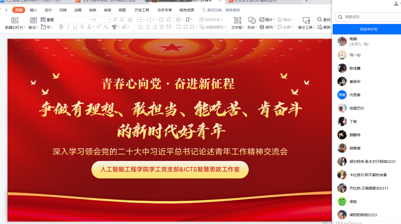 11月20日,人工智能工程学院学工党支部开展学习党的二十大精神学习交流研讨。