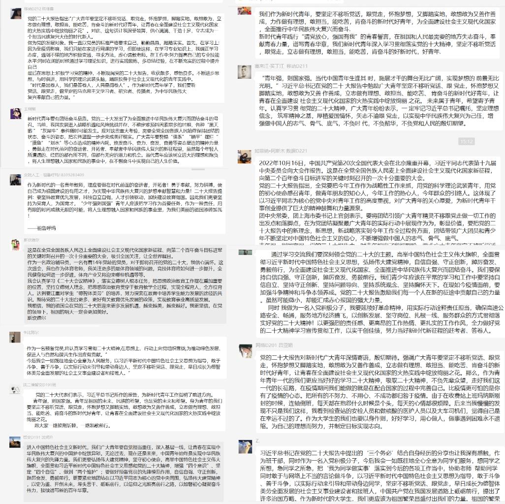 会议围绕宣传贯彻党的二十大精神展开,学工党支部的支部书记和支委从习近平总书记关于青年工作的论述、把握好习近平新时代中国特色社会主义思想的世界观和方法论、领会和践行社会主义核心价值观等多角度深化同学们对于二十大精神的理解与探索,全面贯彻二十大精神的落实。