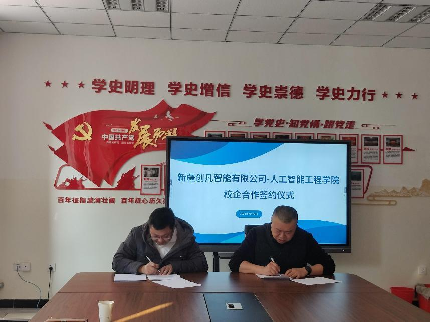 3月2日,人工智能工程学院与新疆创凡智能有限公司进行了校企合作签约仪式及座谈交流会。人工智能工程学院党总支书记李刚主持会议。