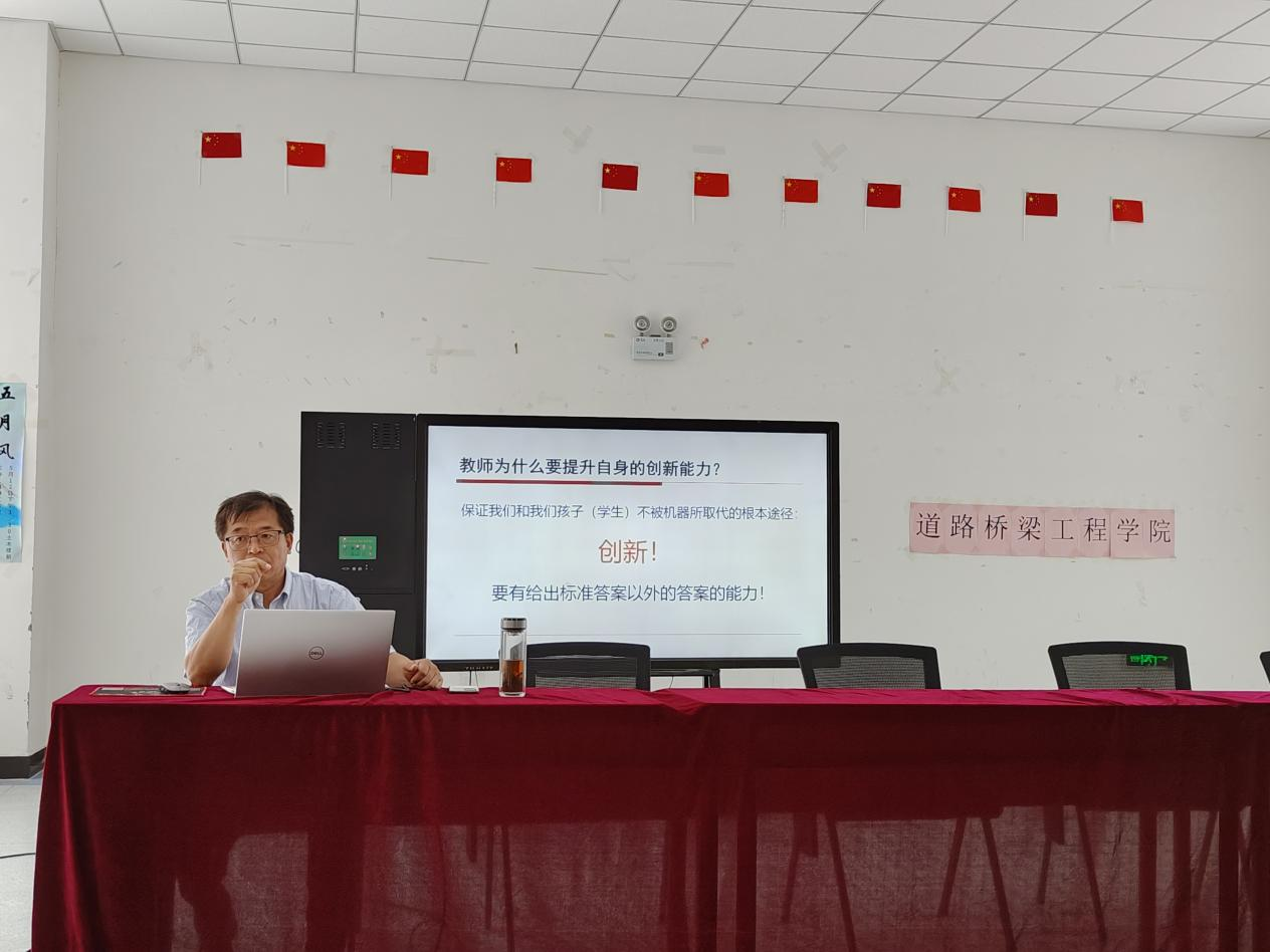 道路桥梁工程学院副院长李云峰受邀作《教师创新能力提升研讨》培训讲座。李云峰围绕教师为什么要提升自身的创新能力、教师怎样提升创新能力以及如何在教学工作中进行创新这三个方面进行了详细讲解。李云峰幽默生动的语言让整场讲座妙趣横生,他提出,改革创新无处不在,要不忘初心、牢记使命,“以不变应万变”,不变的是以学生为中心,万变是老师的教学方法。