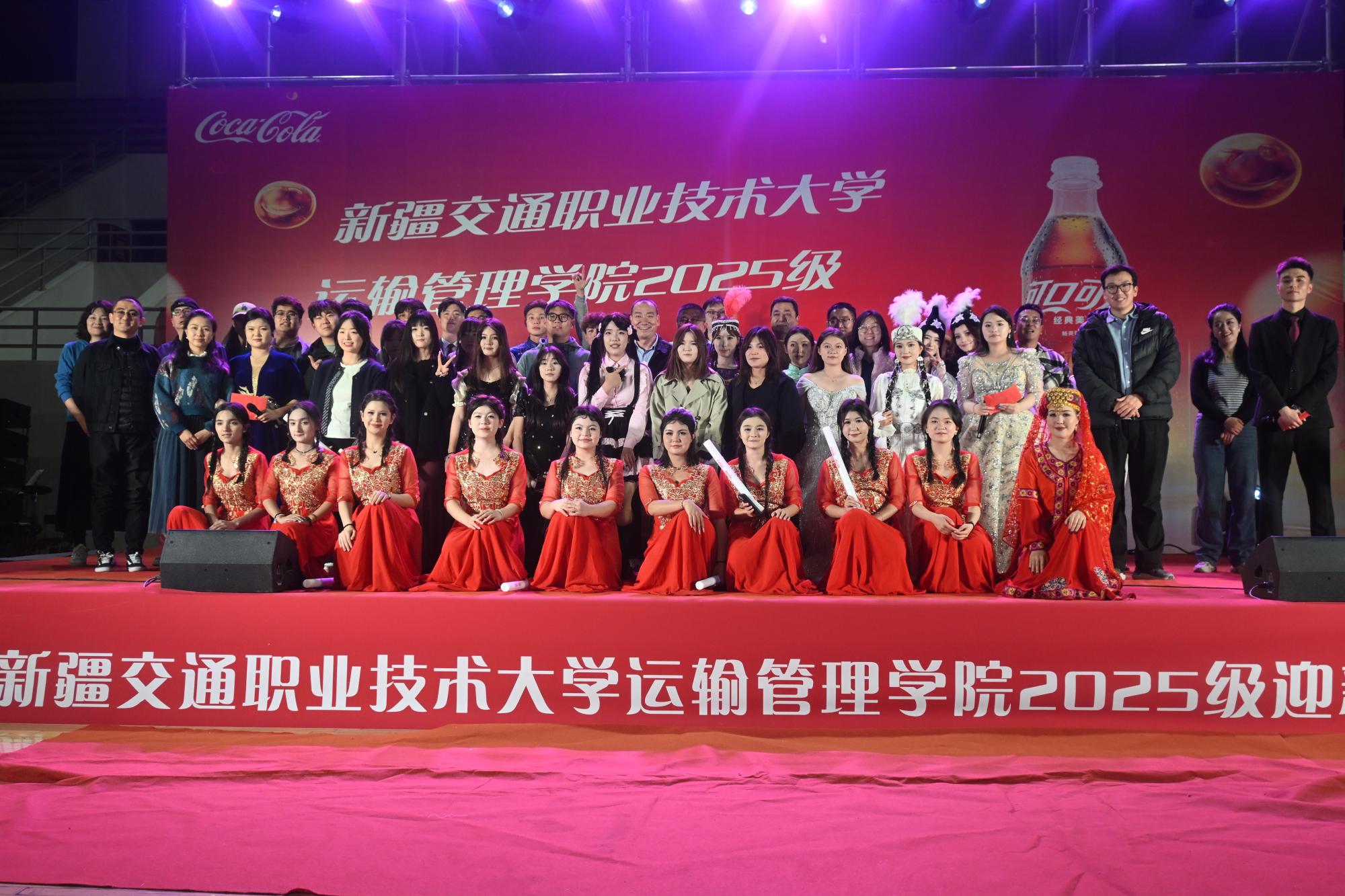除了精彩的文艺表演,晚会还巧妙穿插互动游戏与抽奖环节,师生积极参与、热情互动,现场氛围持续高涨。此次晚会全程由中粮可口可乐新疆分公司赞助,为活动的顺利开展提供了有力支持。