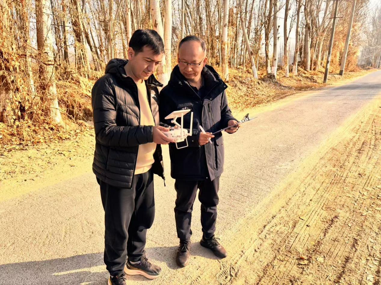为深入贯彻落实新时代党的治疆方略,完整准确全面推进乡村振兴战略,以科技创新破解乡村发展规划难题,12月7日-10日,驻村工作队主动搭建校地合作桥梁,特邀湖南交通职业技术学院、新疆交通职业技术大学联合组成的专业团队,在援疆教师王中伟老师带领下一行师生四人赴英买里 (3) 村、昆其布隆 (9) 村开展“无人机航测助力乡村振兴”技术帮扶活动,用技术赋能为两村高质量发展注入强劲动力。