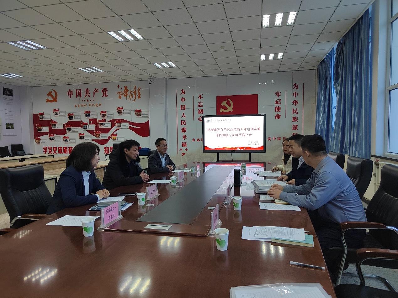 12月18日,自治区人力资源和社会保障厅考核组一行莅临新疆交通职业技术大学,对机电工程学院2023年自治区高技能人才培训基地建设项目开展现场考核验收,学校党委常委、副校长阿布拉江·托合提出席验收会议。