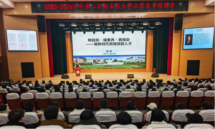 报告最后,赵煜对在场同学提出殷切希望。他鼓励同学们要树立远大人生目标,将个人发展融入国家发展大局;要强化综合素养,在掌握专业知识的同时,注重培养创新精神、实践能力和人文情怀;要善于科学规划,根据自身特点和时代需要,合理设计学业路径和职业发展方向。他表示,学校将持续完善人才培养体系,深化产教融合、科教融汇,为同学们成长成才创造更好条件。