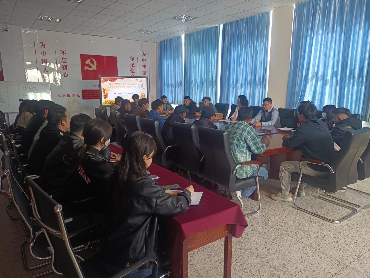 4月6日下午,机电工程学院“明思”德育辅导员工作室联合学生党支部开展了主题党日活动暨入党积极分子座谈会,学生党支部书记麦尔哈巴主持会议。